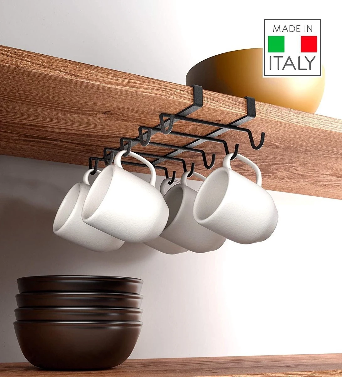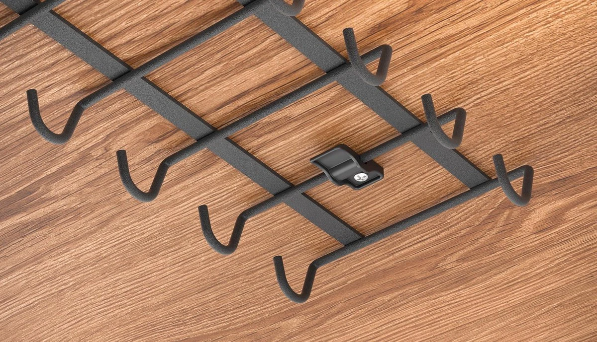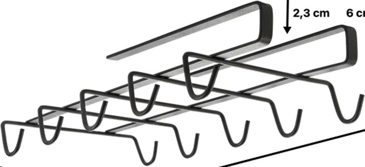 De montage van de kopjeshouder is erg simpel: je schuift de beugels gewoon over een (keukenkast)plank en voor extra zekerheid kun je de meegeleverde schroefjes gebruiken. Het mokkenrek heeft een luxe TouchTherm-coating die antistatisch, roest- en krasbestendig is en tevens eenvoudig schoon te houden is. Geschikt voor planken met een dikte tot maximaal 2,3 cm en in totaal is het kopjesrek 14 cm breed, 28 cm diep en 6 cm hoog.