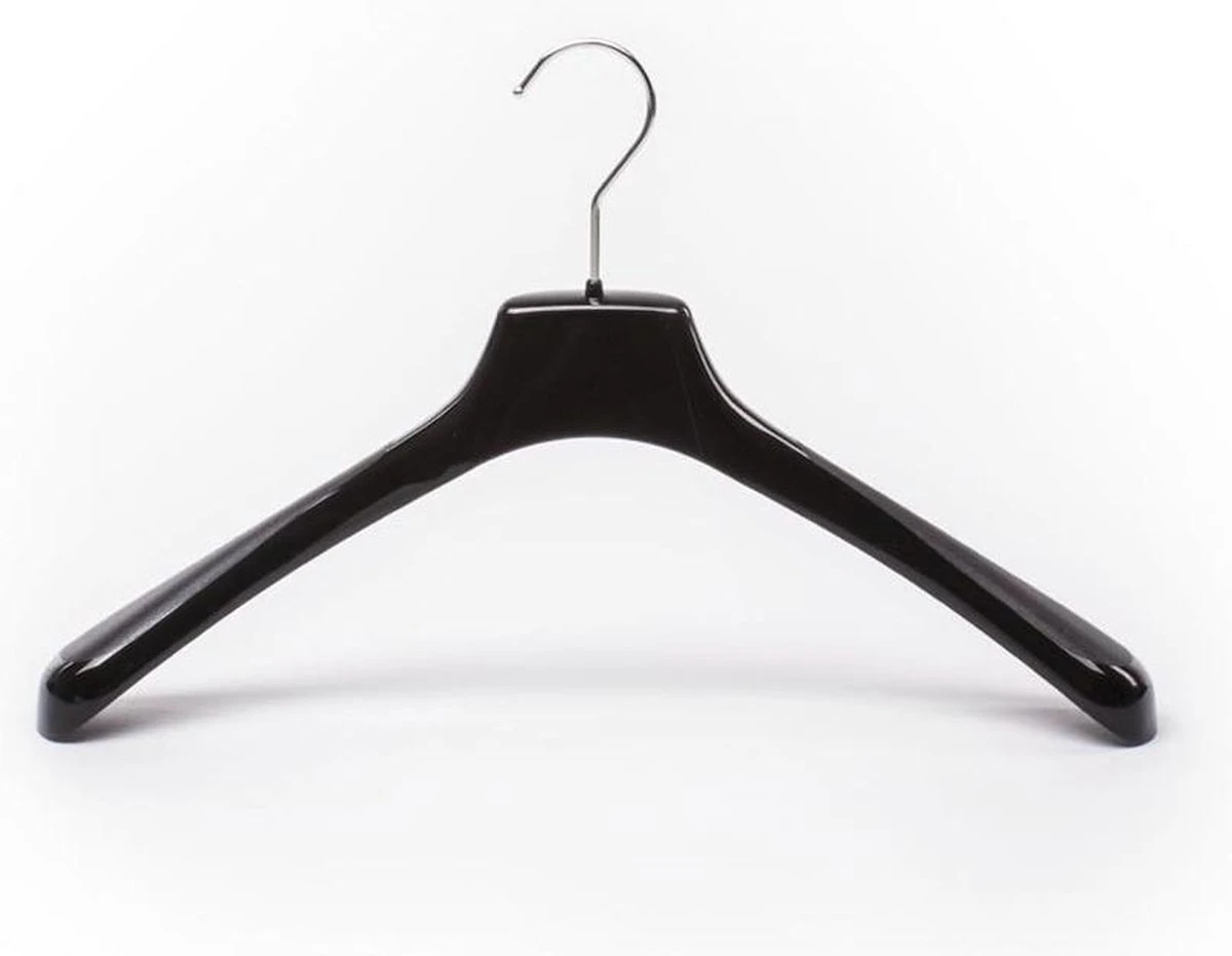 Degelijke en mooi vormgegeven brede, lichtgewicht zwarte kunststof kledinghangers
