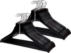 Prachtige universele zwart gelakte houten kledinghangers.