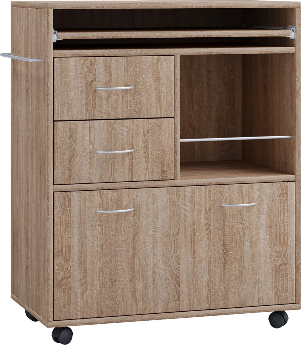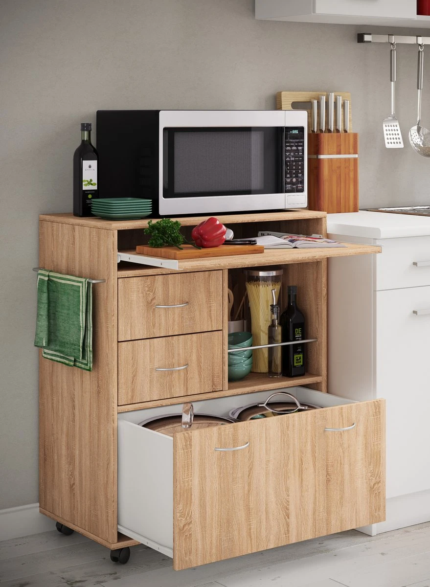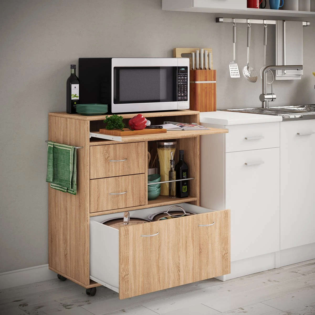 VCM Houten Keukenkarretje Serveerwagen Planken Rolbare Wielen Lade Kicha Houten Keukenkarretje Serveerwagen Planken Rolbare Wielen Lade Kicha