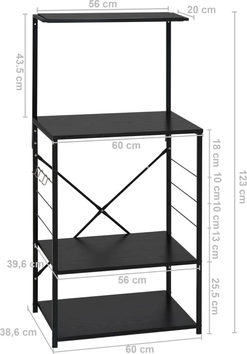 Deze keukenkast is gemaakt van spaanplaat waardoor hij eenvoudig te reinigen is met een vochtige doek. De stevige stalen structuur maakt hem roestbestendig en draagt bij aan de stevigheid. Deze kast heeft 4 schappen, waardoor je voldoende ruimte hebt om je spullen op te bergen zoals een tosti-ijzer, kruiden en borden. De kast heeft haken aan de zijkant voor het ophangen van keukengerei. Je kunt hem ook in je woonkamer of op kantoor gebruiken voor het weergeven van je verzamelobjecten, fotolijsten, enz.
