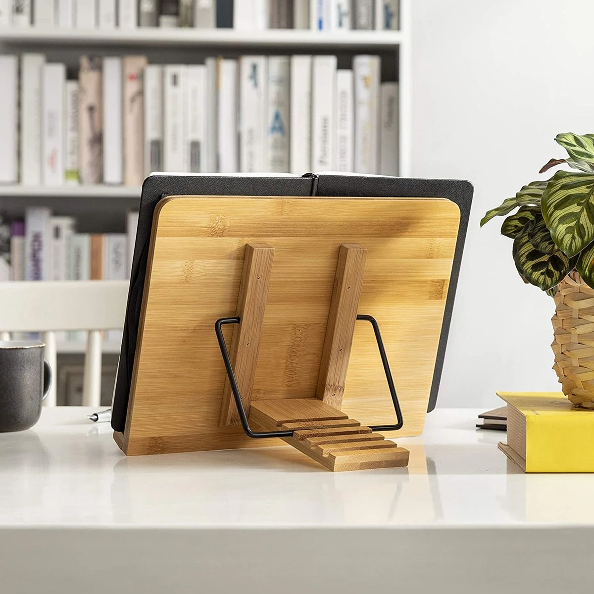 Bent u op zoek naar een boekenhouder van natuurlijk materiaal voor uw keuken? Dan is de Wonix bamboe boekenhouder iets voor u. De boekenstandaard is gemaakt van bamboe van topkwaliteit, waardoor hij duurzaam, stabiel en milieuvriendelijk is. Hij kan versteld en gevouwen worden om aan verschillende eisen te voldoen. De 2 pagina houders helpen om uw boek, tablet of telefoon te beschermen. Bestel nu de bamboe boekenstandaard en geniet van uw lezing.