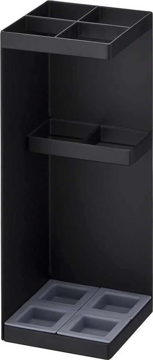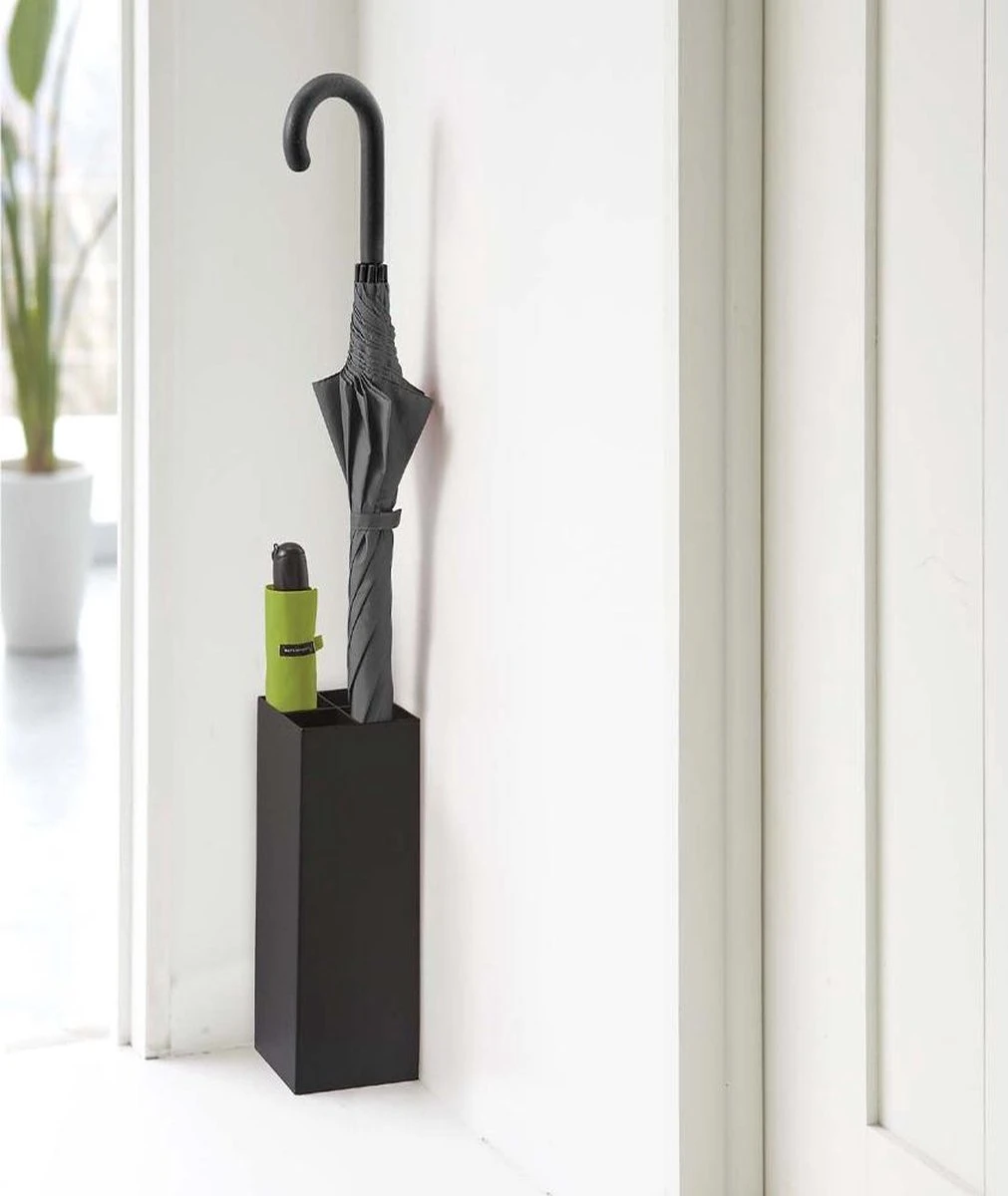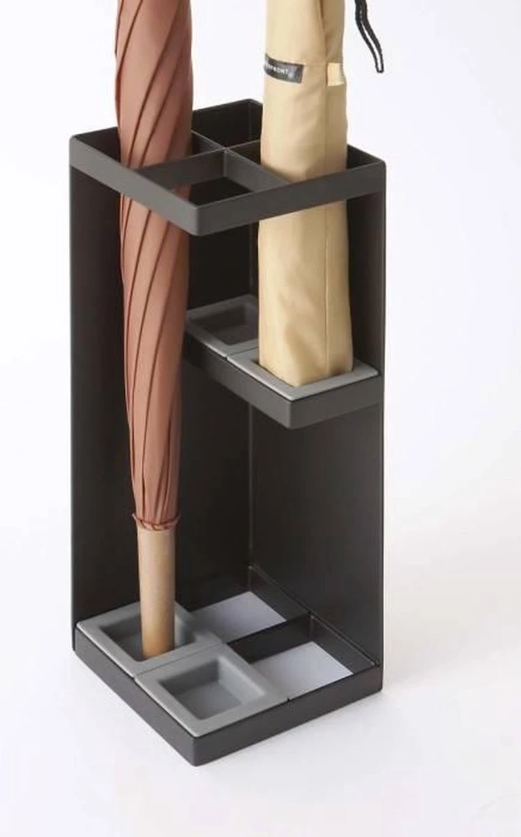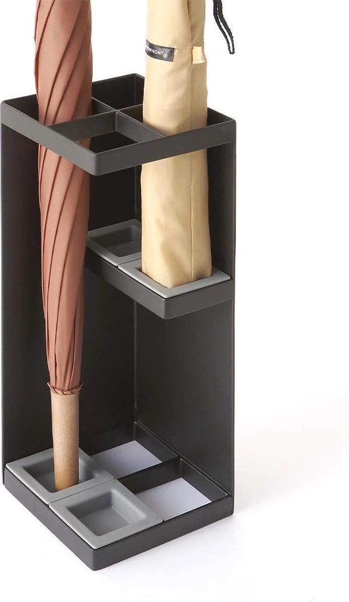 De paraplubak is zwart en is gemaakt van gepoedercoat staal. De uitneembare bakjes zijn van ABS kunststof. Door de hoogte van 30 cm passen ook lange paraplu’s in de parapluhouder en wordt je paraplu opbergen een eitje. Verder is de bak 11 cm breed en 11 cm diep.